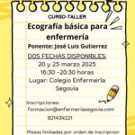 ECOGRAFÍA BÁSICA PARA ENFERMERÍA ACCESO VASCULAR PERIFÉRICO ECOGUIADO. ECOGRAFÍA VESICAL OBJETIVO: Integrar la ecografía como un instrumento útil dentro de las competencias de enfermería, mejorando así la seguridad del paciente y la calidad asistencial FECHAS: Dos fechas disponibles. Miércoles 20 o Martes 25 marzo 2025 HORARIO: de 16:30 a 20:30 h LUGAR: Colegio Enfermería Segovia ACREDITACIÓN SOLICITADA PONENTES: