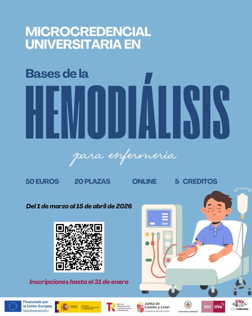 Pueden ver toda la información relacionada con esta microcredencial, así como inscribirse en el siguiente enlace: https://microcredenciales.uva.es/microcredencial/bases-de-hemodialisis-para-enfermeria/